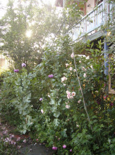 The cottage has a lovely garden with many varieties of old fashioned roses and flowers